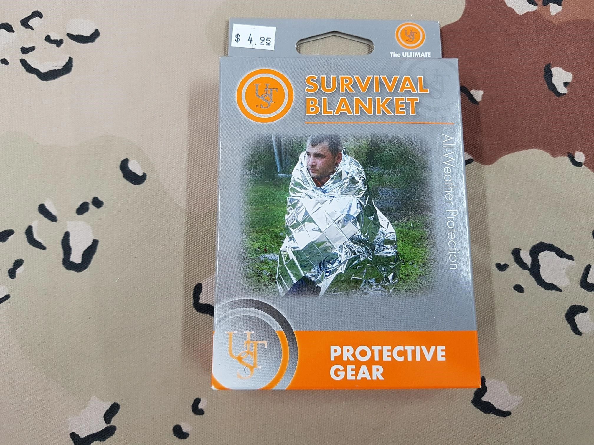 ULTIMATE SURVIVAL TECHNOLOGIES. MYLAR SURVIVAL BLANKET. 83"x52" $4.95
